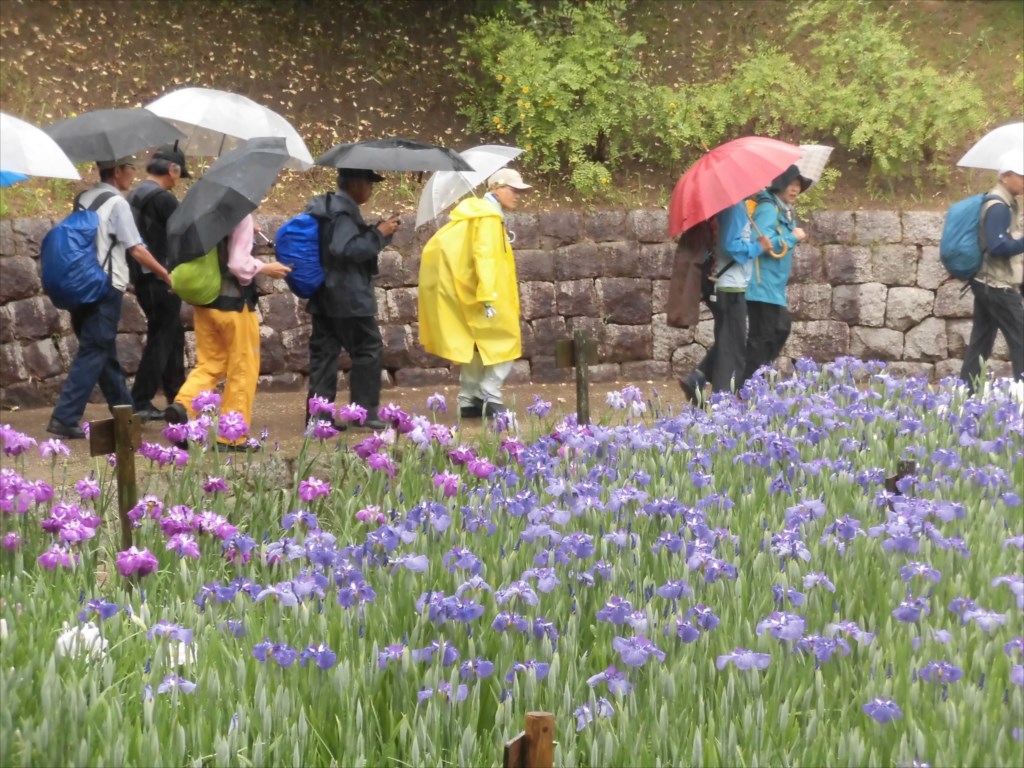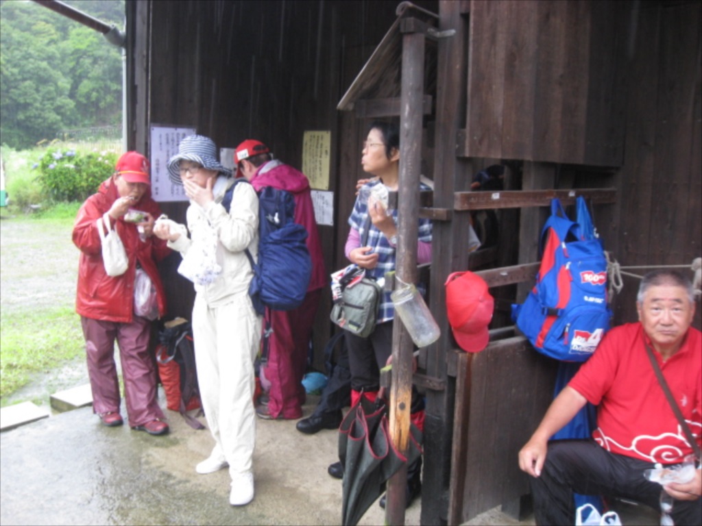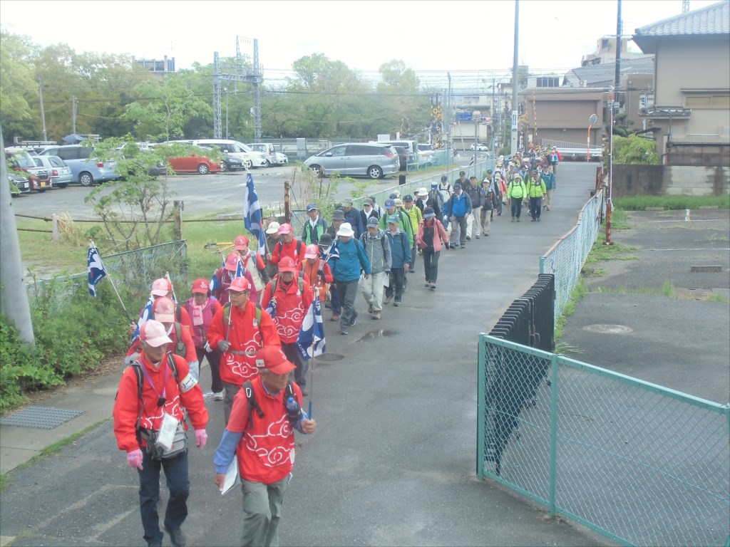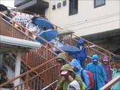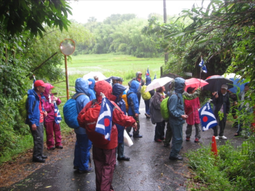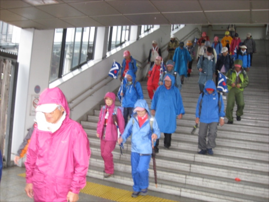 | 雨でも熱心な方達が | 雨にも負けず出発 | 雨中の行進く |