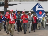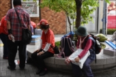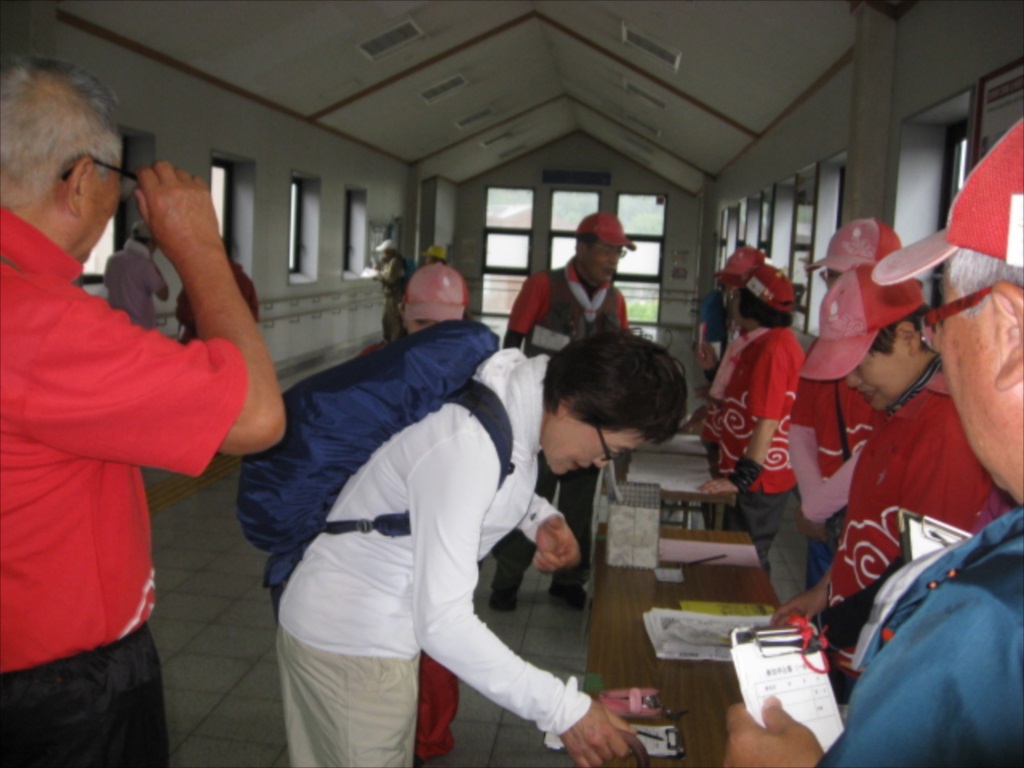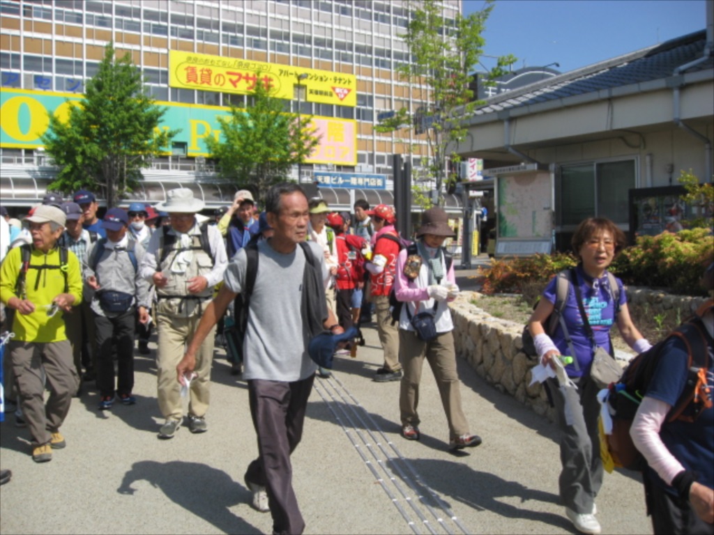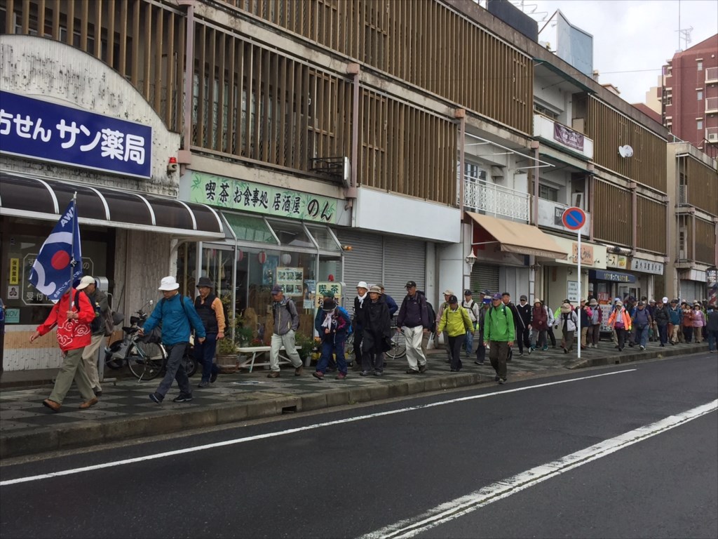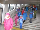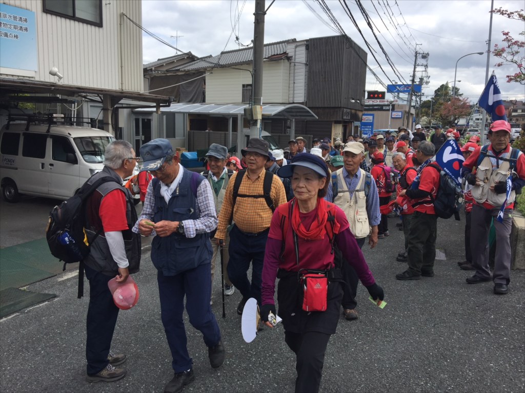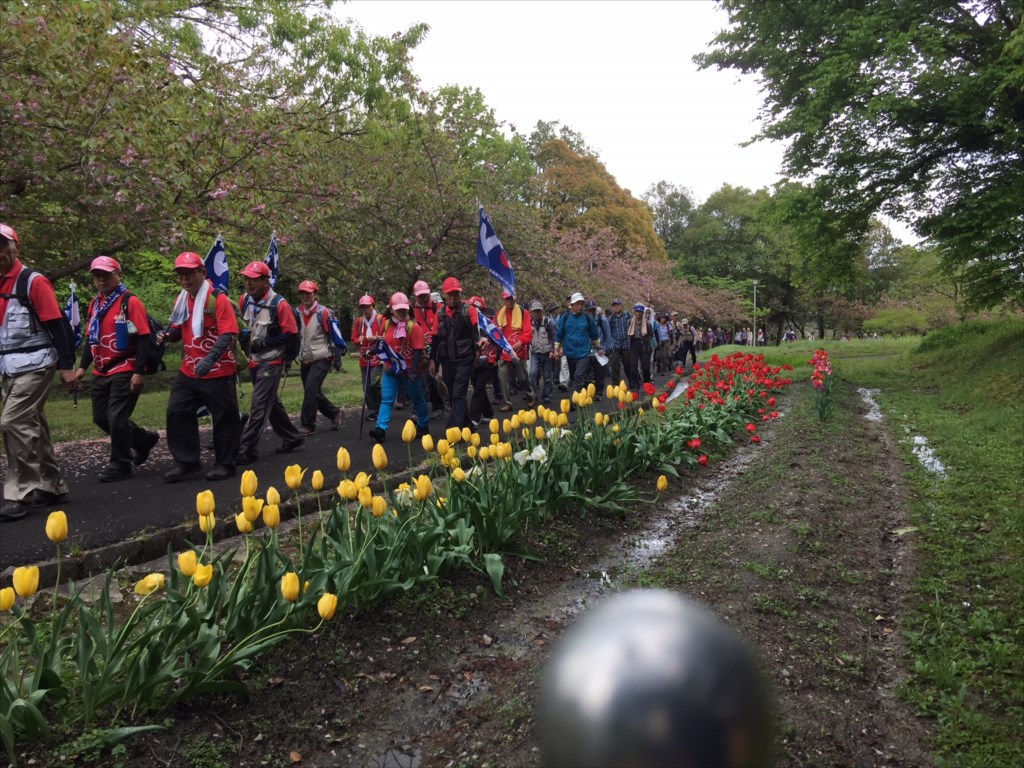 | 雨でも熱心な方達が | 雨にも負けず出発 | 雨中の行進く |