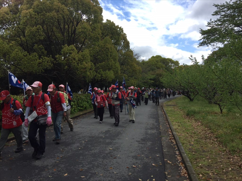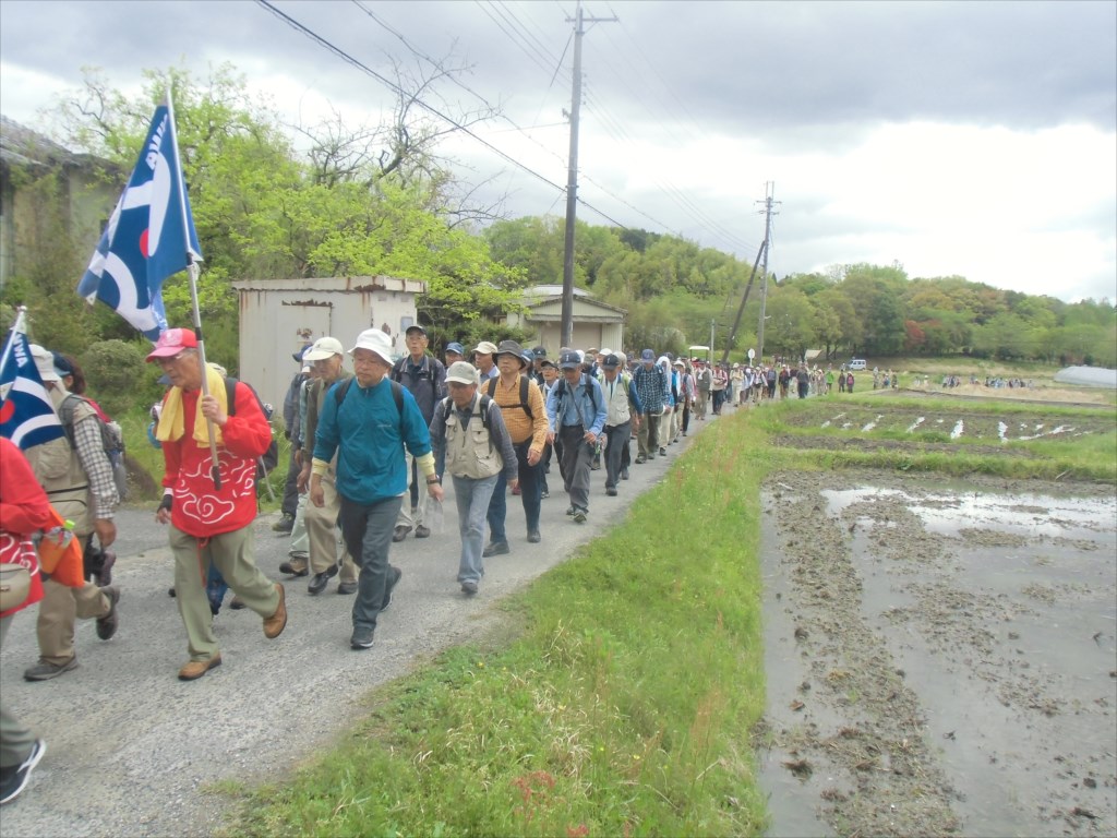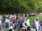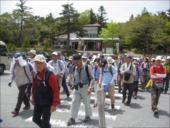 | コース説明を聞いて | 元気よく出発 | 190人の行進 | 静かな円照寺の参道 |