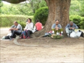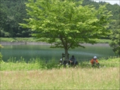 | 昼食は池の周りで | 池に写る人々 | のどかな田園風景 | 白毫寺までもう少し |